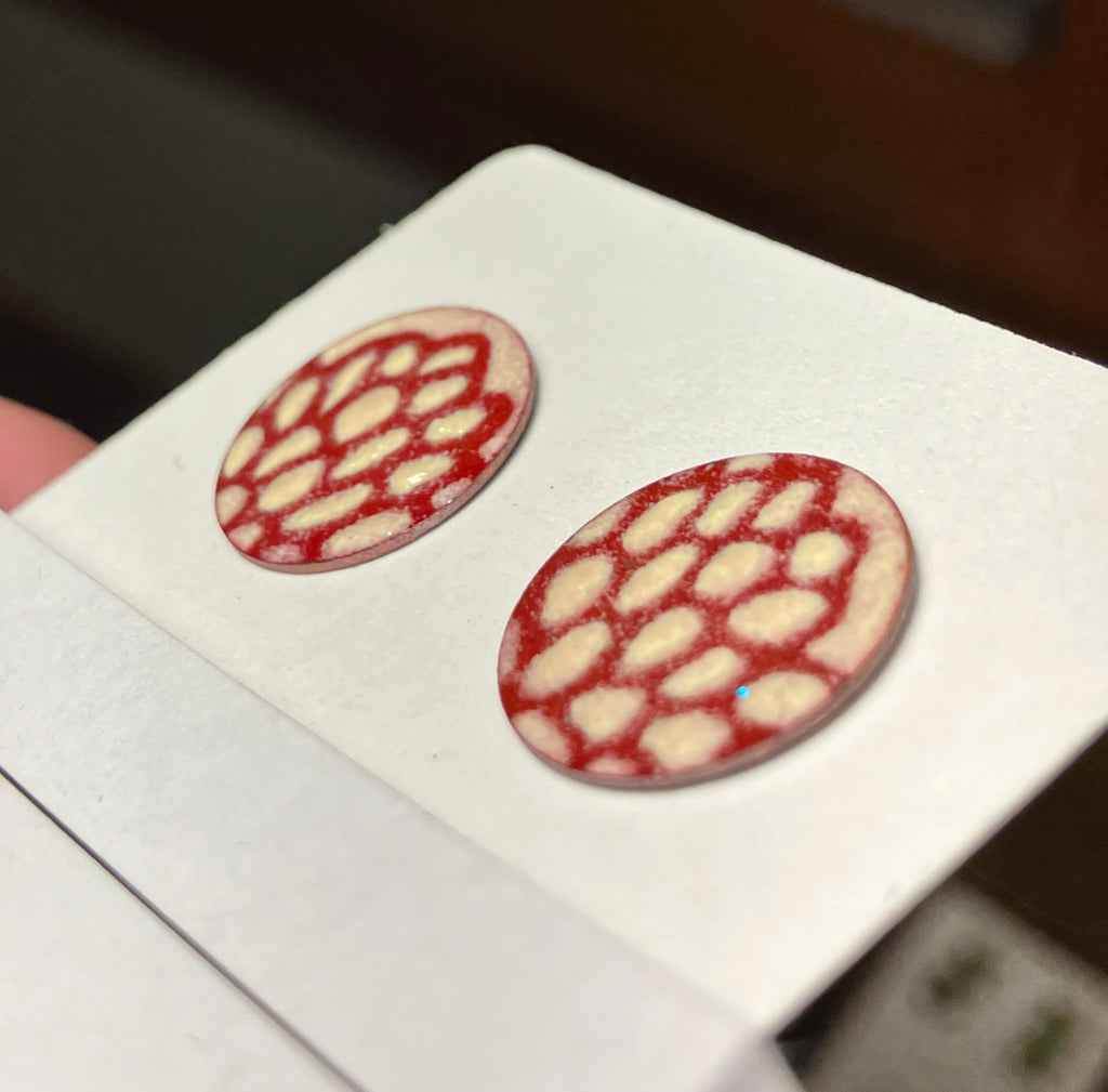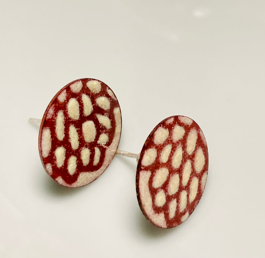 1 pair of studs Abstract original design covering a slice of copper. Funky style that makes a statement.
